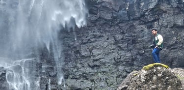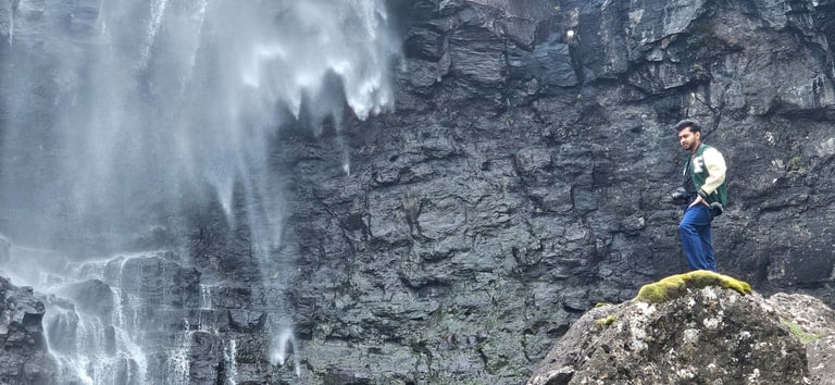 Eager for a closer look, Ateeq and Zaid made their way down the steep concrete steps and carefully crossed the rocky terrain to view the waterfall from below. From that vantage point, the sight was even more powerful and awe-inspiring. They spent time there, soaking in the beauty of the scene and capturing countless photos to remember the moment.