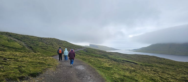 Though tiring, the return walk felt light, our hearts were full and our cameras full of memories. We had planned to stop at Mikladalur to see the Seal Woman statue but decided instead to return to the ferry and head back to Klaksvík. From there, we made our way home to Selatrao.