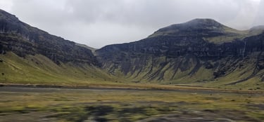 The next morning our plan for the day was to explore Mulagljufur Canyon, with its lush greenery, dramatic cliffs, and waterfalls tucked deep in the landscape, followed by a visit to the otherworldly Sigoldugljufur Canyon, often called the "Valley of Tears" because of the many small waterfalls streaming down its sides. Later, we had planned to end the evening in Vik, attending the Lava Show to witness a fascinating demonstration of molten lava.