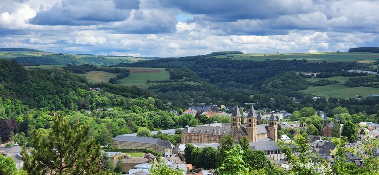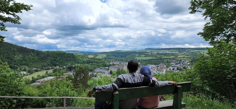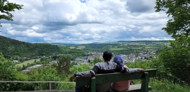 The bench there offered a breathtaking view of the landscape, with the green surroundings of Echternach stretching out for miles. The rolling hills, dotted with trees and patches of farmland, extended into the distance, creating a peaceful and almost surreal atmosphere. Sitting there, it felt as if time had slowed down, and we could truly appreciate the beauty of nature.